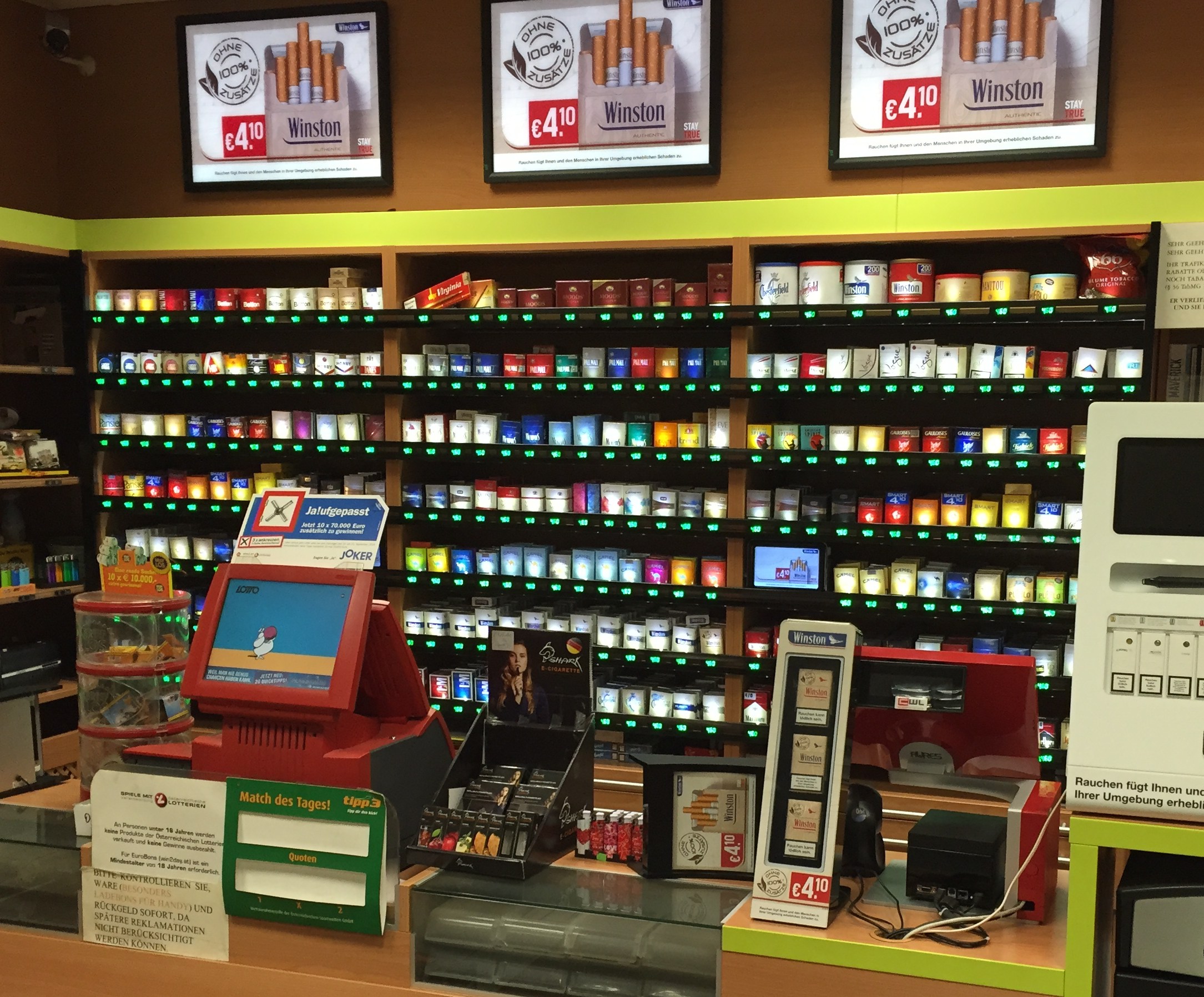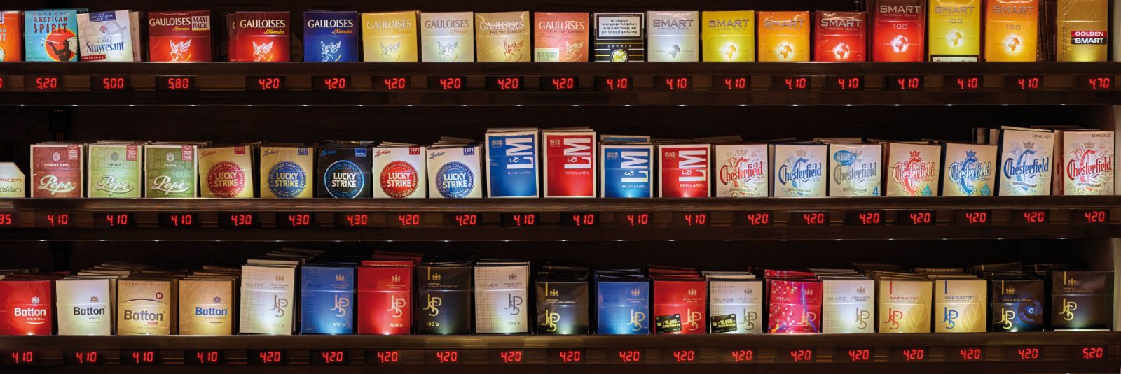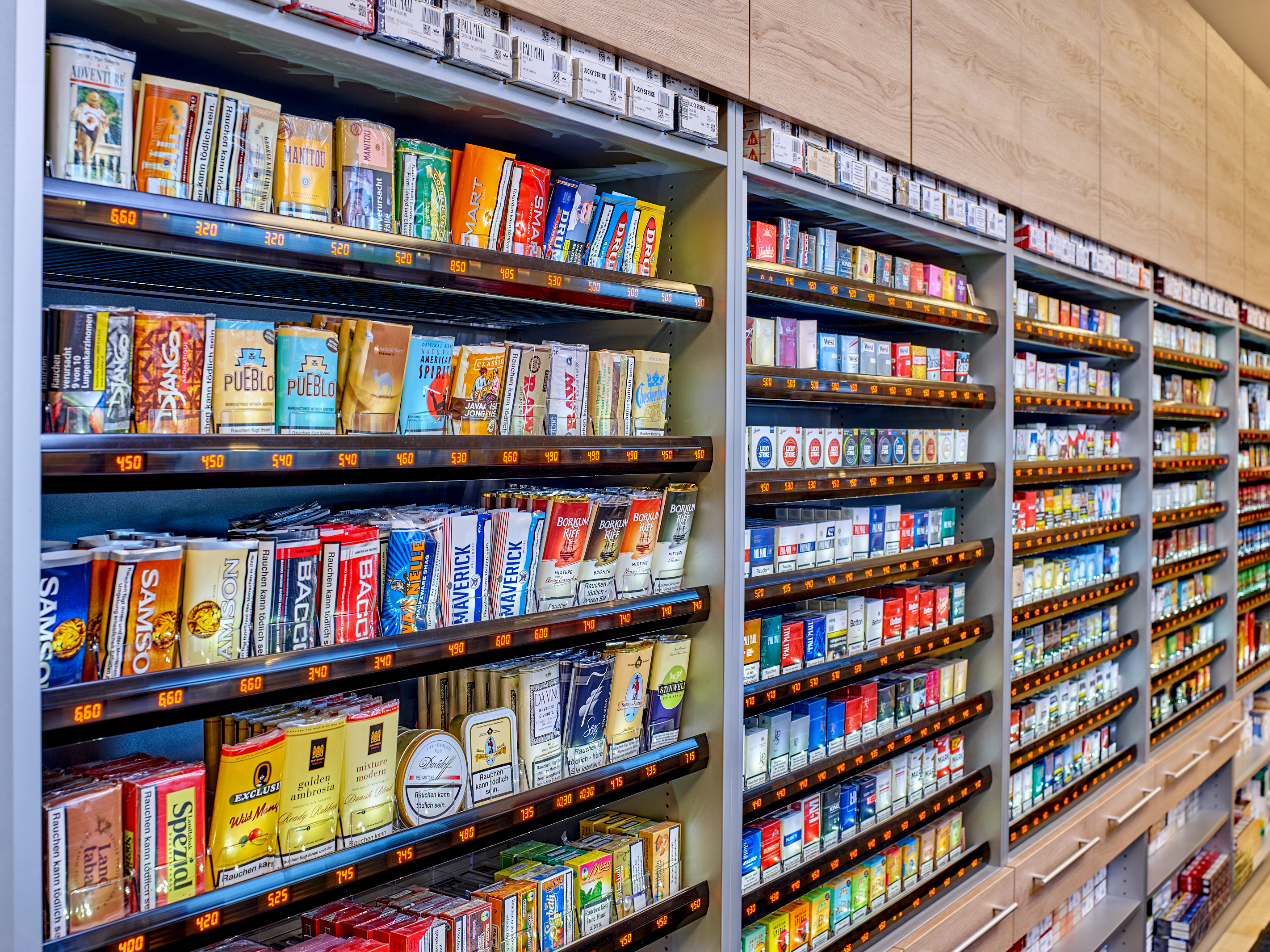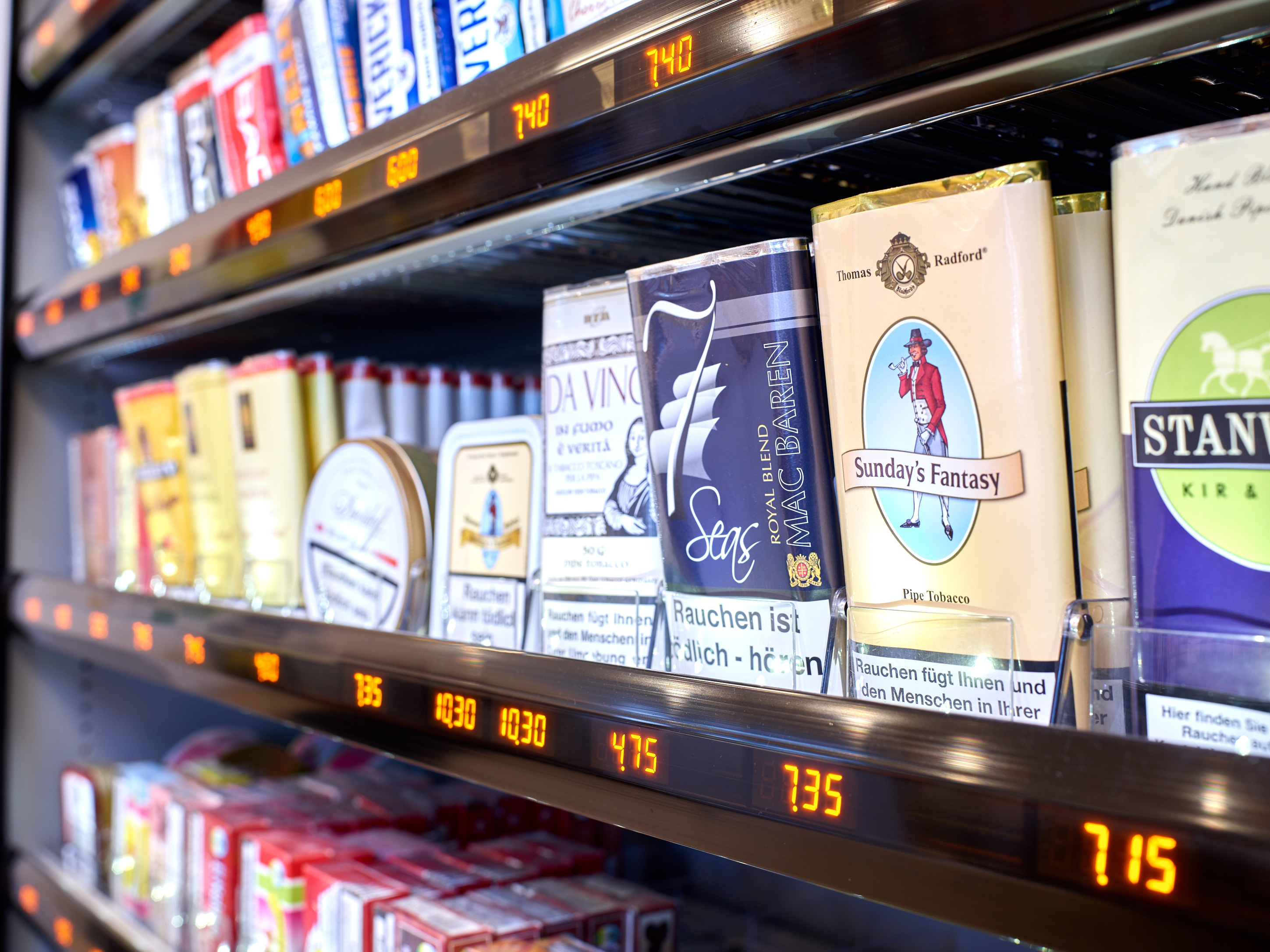 Die digitale Preisauszeichnung eignet sich wunderbar für Zigaretten, Tabake und Liquids sowie für jegliche Artikel, die in durchgehenden Fächern positioniert werden.
