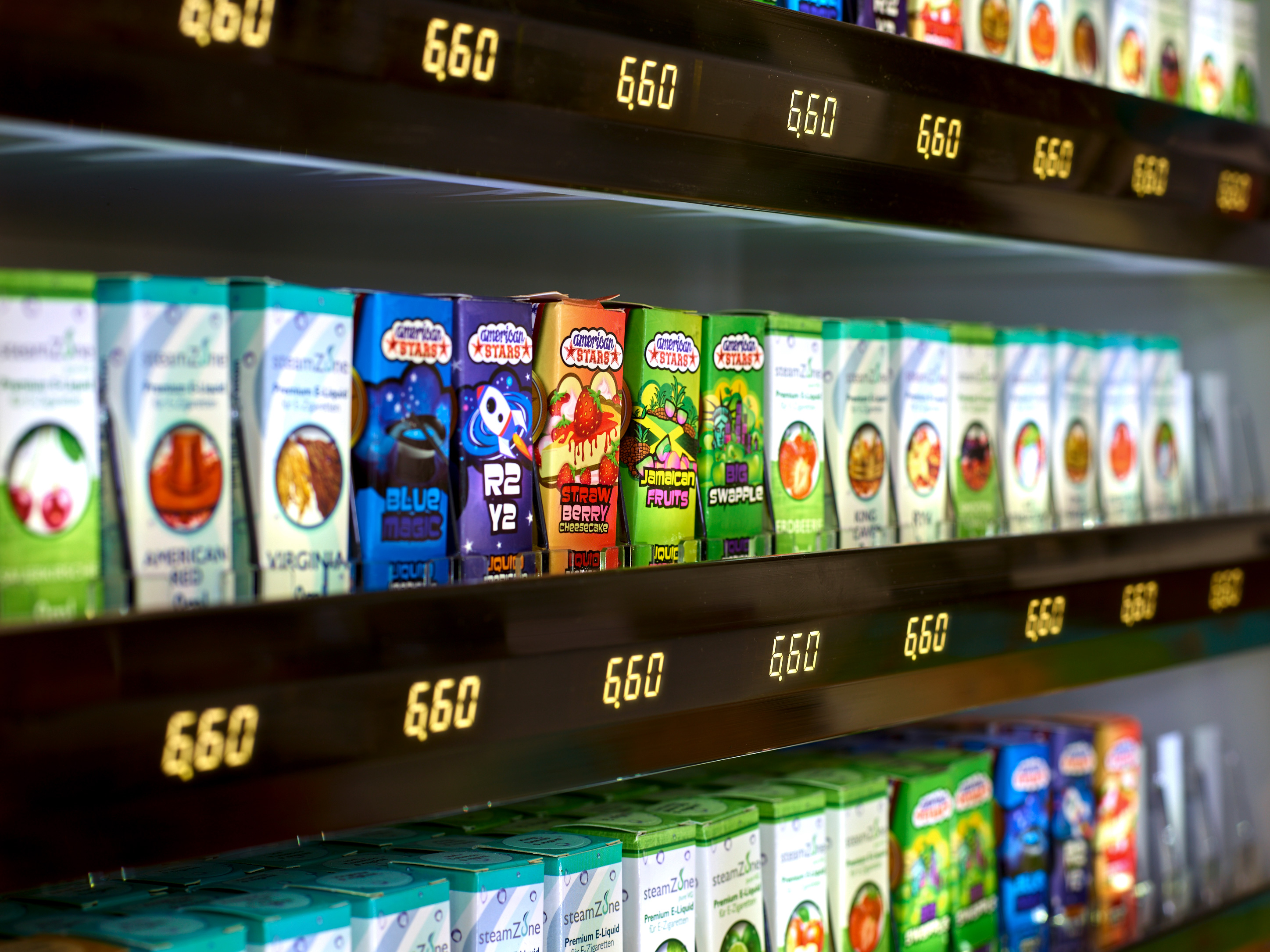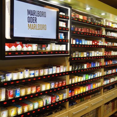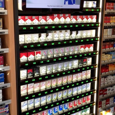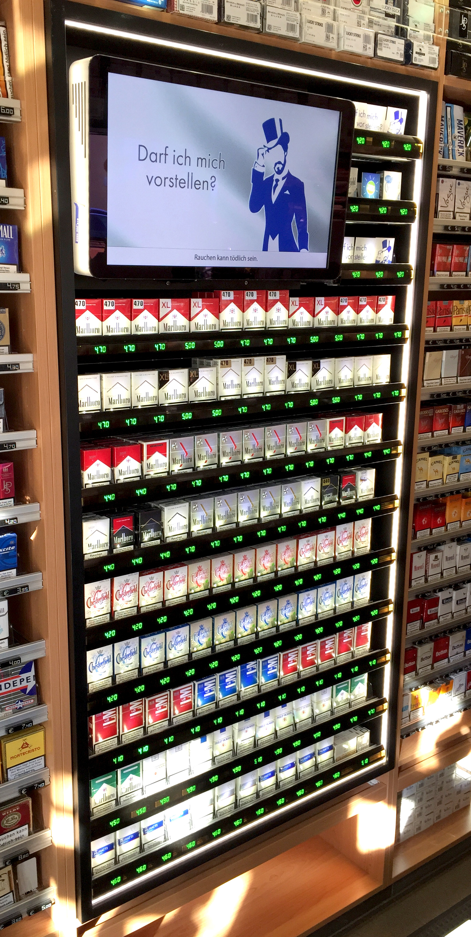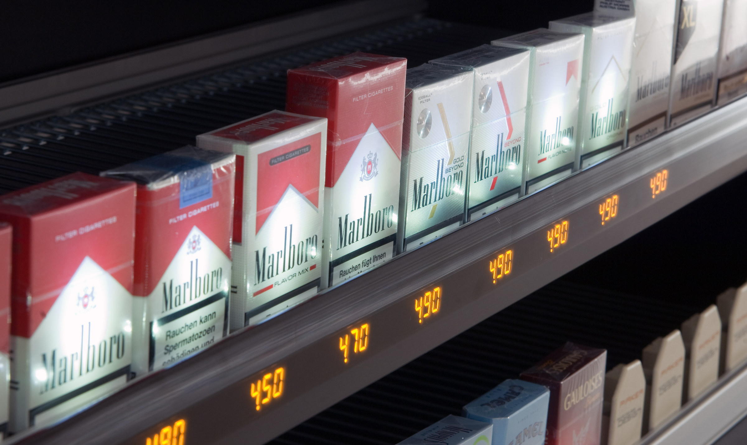 Die digitale Preisauszeichnung eignet sich wunderbar für Zigaretten, Tabake und Liquids sowie für jegliche Artikel, die in durchgehenden Fächern positioniert werden.